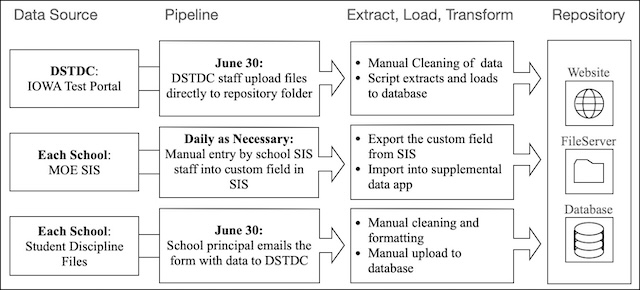 DSTDC uses a data warehouse approach illustrated in the diagram below.